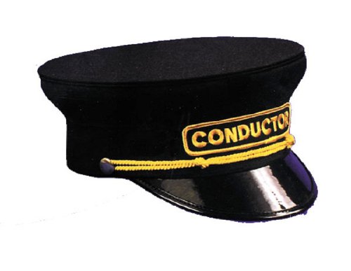 Conductor Hat - Official Design - black - cloth hat with vinyl bill.SIZES, Large: 7 3/8 & 7 1/2 Medium: 7 1/8 & 7 1/4 X-Large: 7 5/8